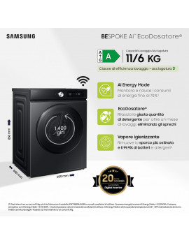 carrello favorite_border Aggiungi alla lista dei desideri cached equalizer Aggiungi per confrontare cached Un'occhiata lavasciuga SAMSUNG WD11DB7B85GBU3 LAVASCIUGA 1400GIRI 11/6KG ECODOSE WIFI NERO CL.D 803,00 € Prezzo