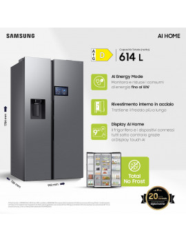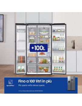 Motore digital inverter garantito 20 anni Spacemax auto oper door display AI HOME Wifi Frigorifero Cassetto verdura “Superfresco” 2 Ripiani 4 Portabottiglie Flex • Balconcini porta 5 Scomparto bottiglie 1 Contenitore uova 1 Freeze Ripiani 4 Cassetti 2 Balconcini porta 5 Rivestimento interno in acciaio
