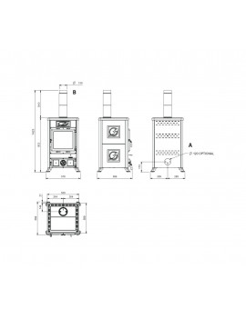 Caratteristiche principali • Focolare in ghisa • Porte, telai e testata in ghisa smaltata • Cassetto cenere estraibile • Aria primaria e secondaria regolabile per migliore gestione combustione • Sistema di post-combustione per basse emissioni • Vetro ceramico