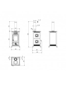 Caratteristiche tecniche Dimensioni (LxHxP): 460x840x495 mm Dimensione bocca fuoco (LxH): 220x215 mm Dimensioni focolare (LxHxP): 220x370x290 mm Legna lunghezza max: 25 cm Consumo orario: 1.8 kg/h Diametro scarico fumi (Ø): 120 mm SUP Rendimento: 88.5 % Peso Netto: 100 kg Certificazione Ambientale DM186: 5 stelle Classe Energetica: A+ Potenza termica nominale: 7 kW Superficie riscaldabile: 201 m³