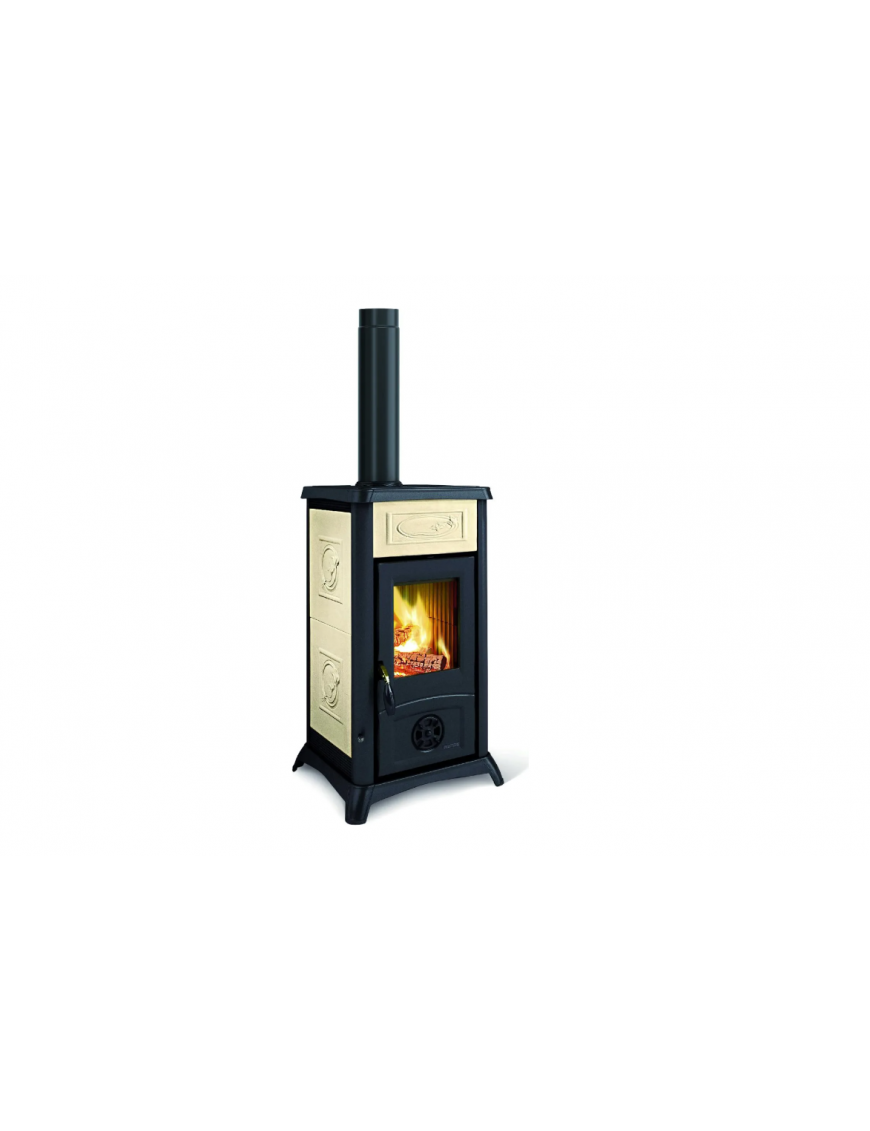 Caratteristiche principali Focolare in ghisa Porta, telaio, basamento e testata in ghisa smaltata Cassetto cenere estraibile Aria primaria e secondaria regolabile per migliore gestione della combustione Sistema di post-combustione per basse emissioni Vetro ceramico